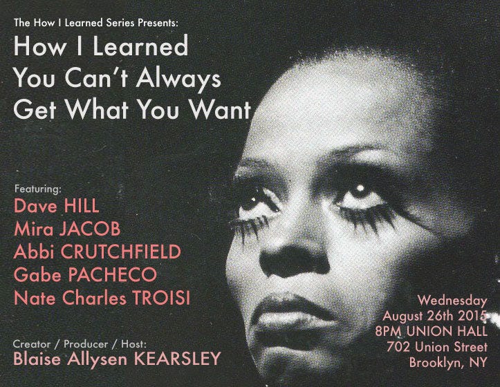 The HOW I LEARNED SERIES was a live, monthly storytelling and reading series that ran for a decade in New York from 2009 to 2019, and featured writers and performers holding forth on a different theme every month.